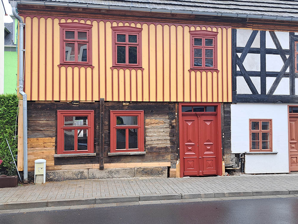 Kraslická hrázděnka je měšťanský dvojdům z 18. století, stojící v původní historické zástavbě města Kraslice. Vznikla jako jeden celek, ale po většinu své existence žila dvěma samostatnými životy – pod různými majiteli, s rozdílnými funkcemi i úpravami. Právě tato dlouhá a nepřerušená historie z ní dnes činí výjimečný doklad městského života v Podkrušnohoří.